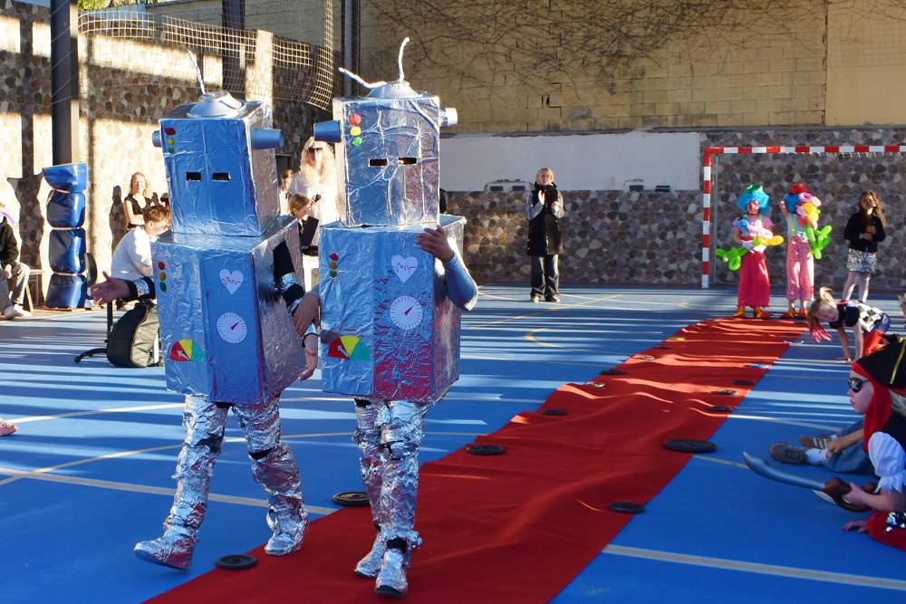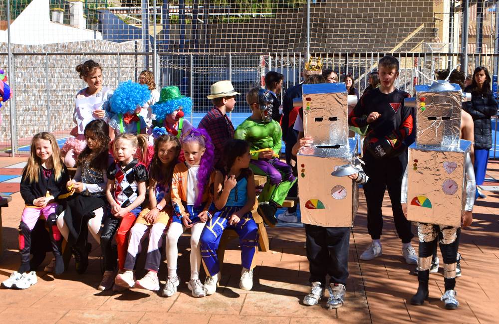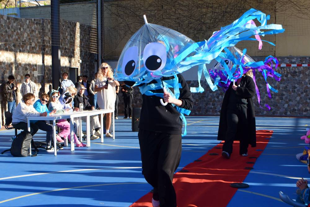 Det er stas å se så mye kreativitet og innsats som ligger bak når folkene på Den Norske Skolen Málaga har karneval sammen: I tidenes villeste vindvær kom det fykende inn mange rare skapninger på skolen i dag. Trude hadde mutert, så henne var det vel åtte av i dag. Sammen med klovner, maneter, roboter, prinsesser, boksere…. og veldig, veldig mye mer. Det var vanskelig å få den røde løperen til å ikke flakse avsted, men ellers ble arrangementet veldig vellykket.