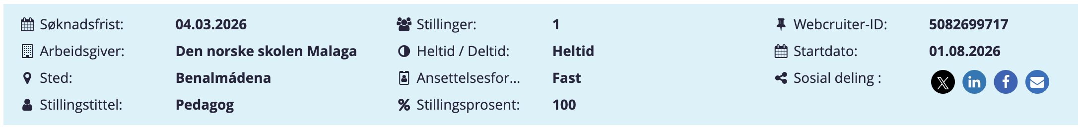 Vi søker etter flere engasjerte og dedikerte pedagoger på ulike trinn, med bred formell fagkompetanse, som ønsker å være med og videreutvikle praksis på skolen vår. Stillingen krever en fleksibel og profesjonell holdning til både arbeidsoppgaver, arbeidstid, kollegaer og ledelse og ikke minst i det relasjonelle arbeidet med elevene våre. Alle stillinger krever formell pedagogisk kompetanse i henhold til de fastsatte kompetansekravene for tilsetting. Stillingene kan innebære både individuell tilrettelagt opplæring og kontaktlæreransvar.