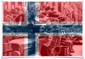 En dag jeg kom hjem fra skolen sa mor “Nå er det fred!”. Da ble det en ellevill fest i byen. Folk var i gledesrus og jeg husker at jeg ble litt redd for det ble faktisk litt voldsomt for meg da jeg bare var 8 år. De fleste løp ut i gatene og ingen betalte på buss og trikk denne dagen. Bilder av Hitler ble ødelagt og mange hentet norske flagg, som hadde vært forbudt å bruke undere krigen. Alle de strenge reglene til tyskerne ble borte og jeg fikk starte på en ordentlig og fin skolebygging. Det var veldig stor stas