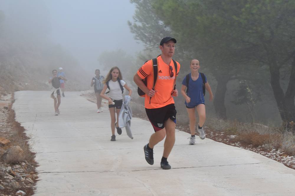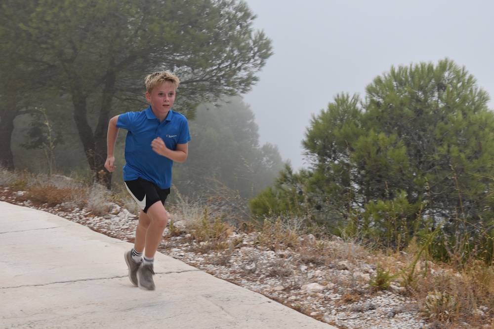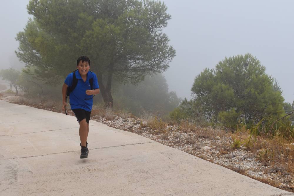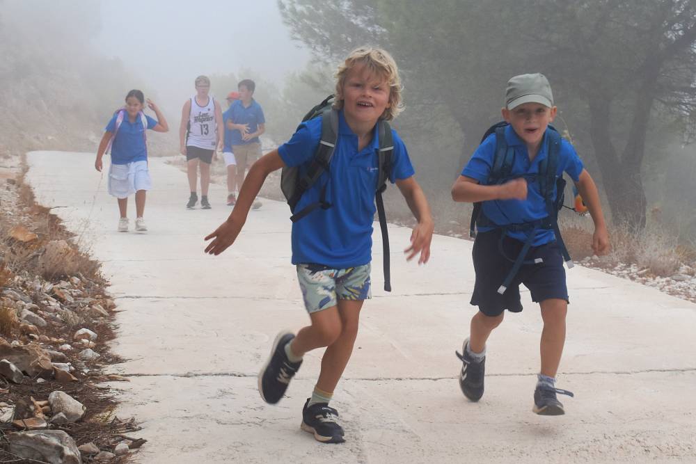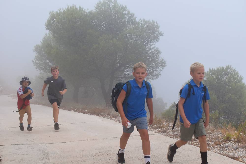 Det årlige ørnefjellsløpet starter ved bommen i Santangelo Norte og ender på majestetiske Calamorro, hele 771 meter over havet. Målområdet for elever som konkurrerer er ved stasjonen til den kjente Teleferico-taubanen i Benalmádena. I dag lå fjelltoppene omkranset av tykk og mystisk tåke. Etter hvert tryllet tåken frem svette, blide barn og ungdommer som kjempet seg oppover mot toppen.