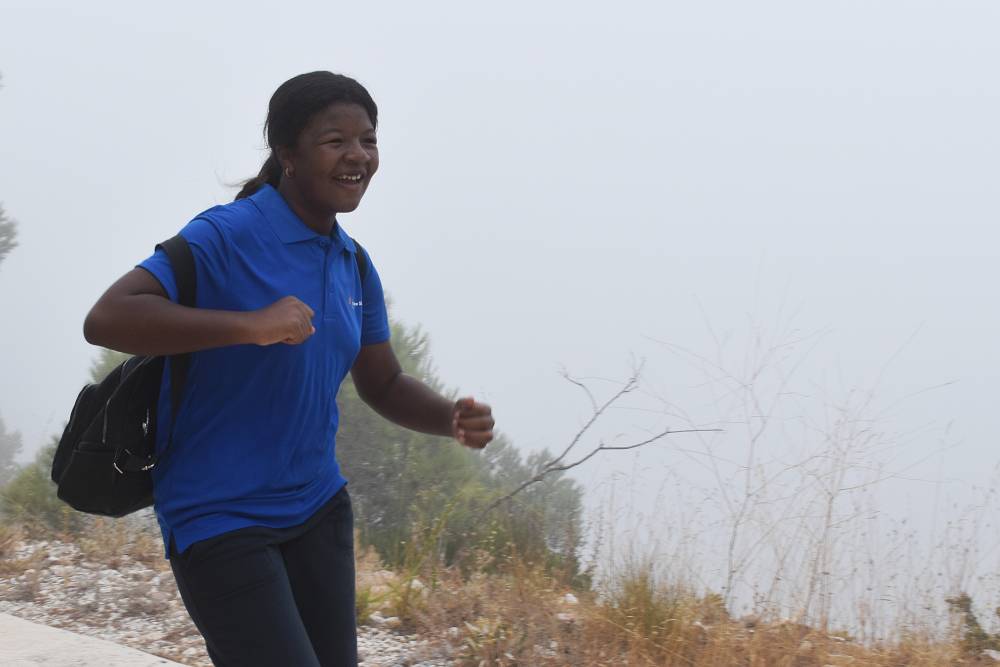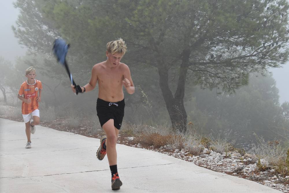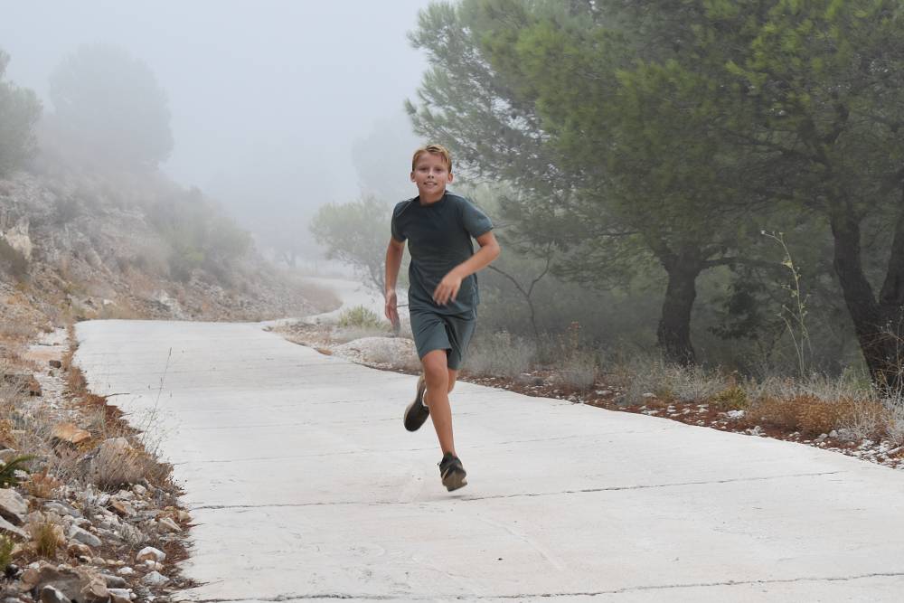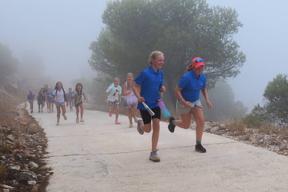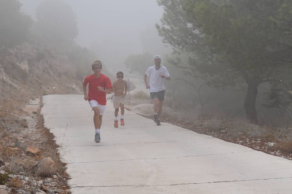 Det årlige ørnefjellsløpet starter ved bommen i Santangelo Norte og ender på majestetiske Calamorro, hele 771 meter over havet. Målområdet for elever som konkurrerer er ved stasjonen til den kjente Teleferico-taubanen i Benalmádena. I dag lå fjelltoppene omkranset av tykk og mystisk tåke. Etter hvert tryllet tåken frem svette, blide barn og ungdommer som kjempet seg oppover mot toppen.