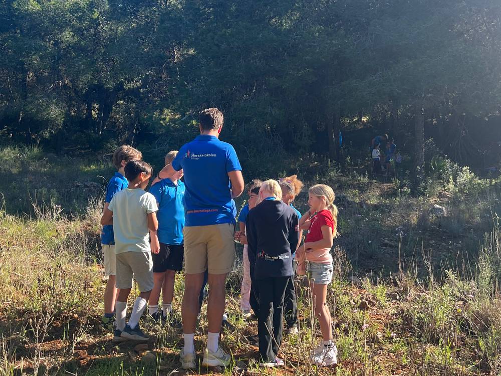 Kontaktlærer i 4. trinn, Petter Kristiansen forteller. -Vi gikk i omtrent en time fra skolen, på vei, grusvei, trange stier og noen små kneiker. Det var noen fall på veien, men alle reiste seg opp og holdt motet oppe både på veien ut og tilbake igjen. Det var mye fin lek der vi slo leir. Mange bygde hytter, noen lekte rundt omkring, og det ble en runde med “Stratego”.
