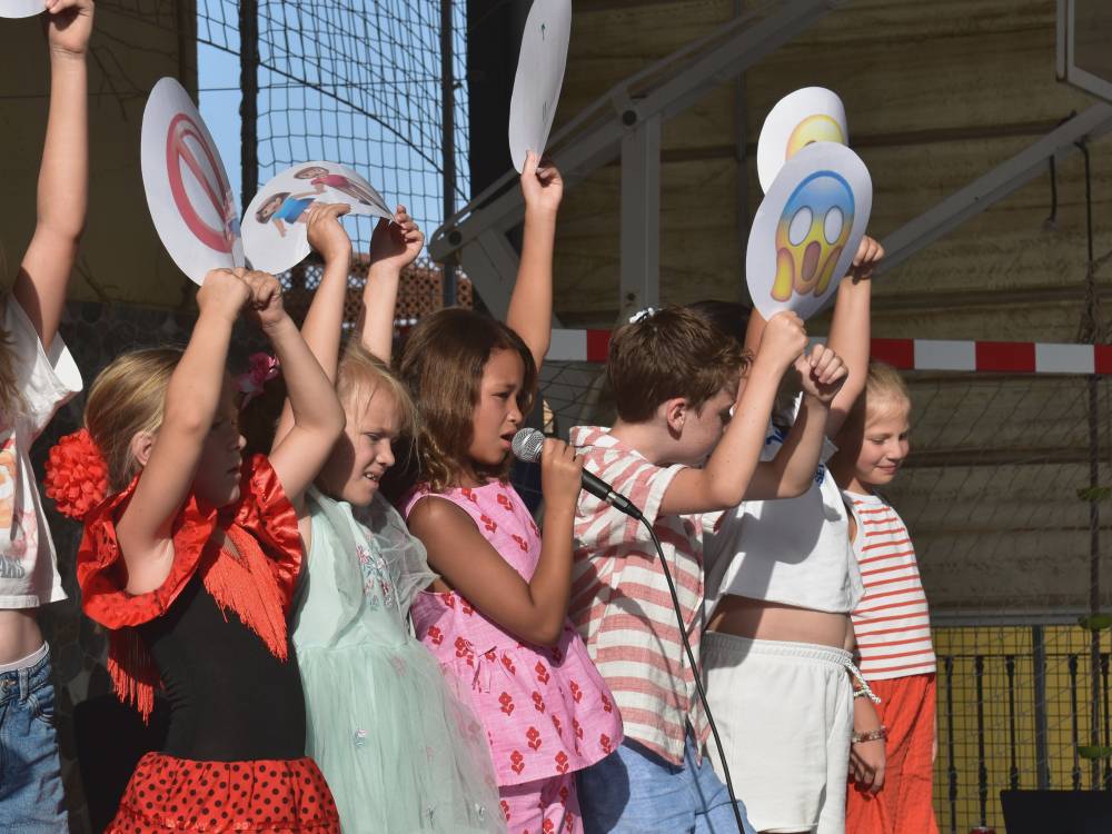Alle klassene har forberedt noe som skal fremføres, og det står sang, musikk, sketsjer og konkurranser på agendaen. Elevene er sommerpyntet, med glade og spente smil, og sender blikk i retning foresatte og kjente iblant publikum. Så starter showet.