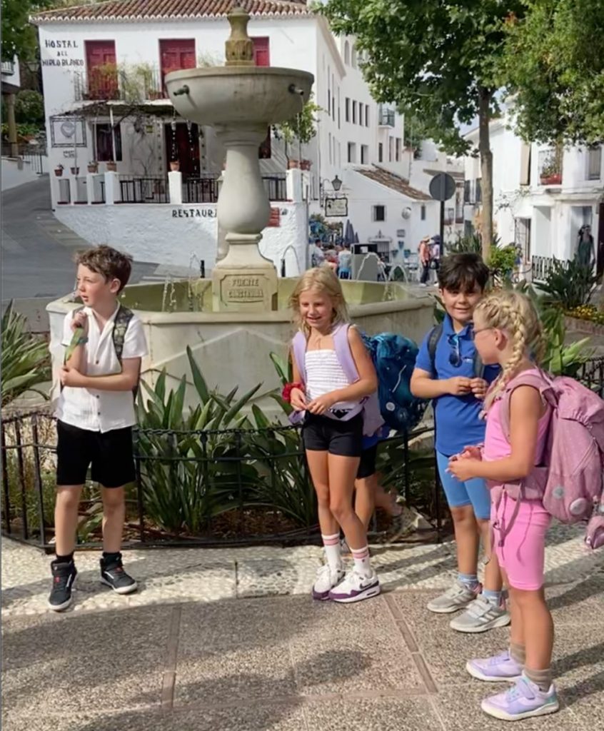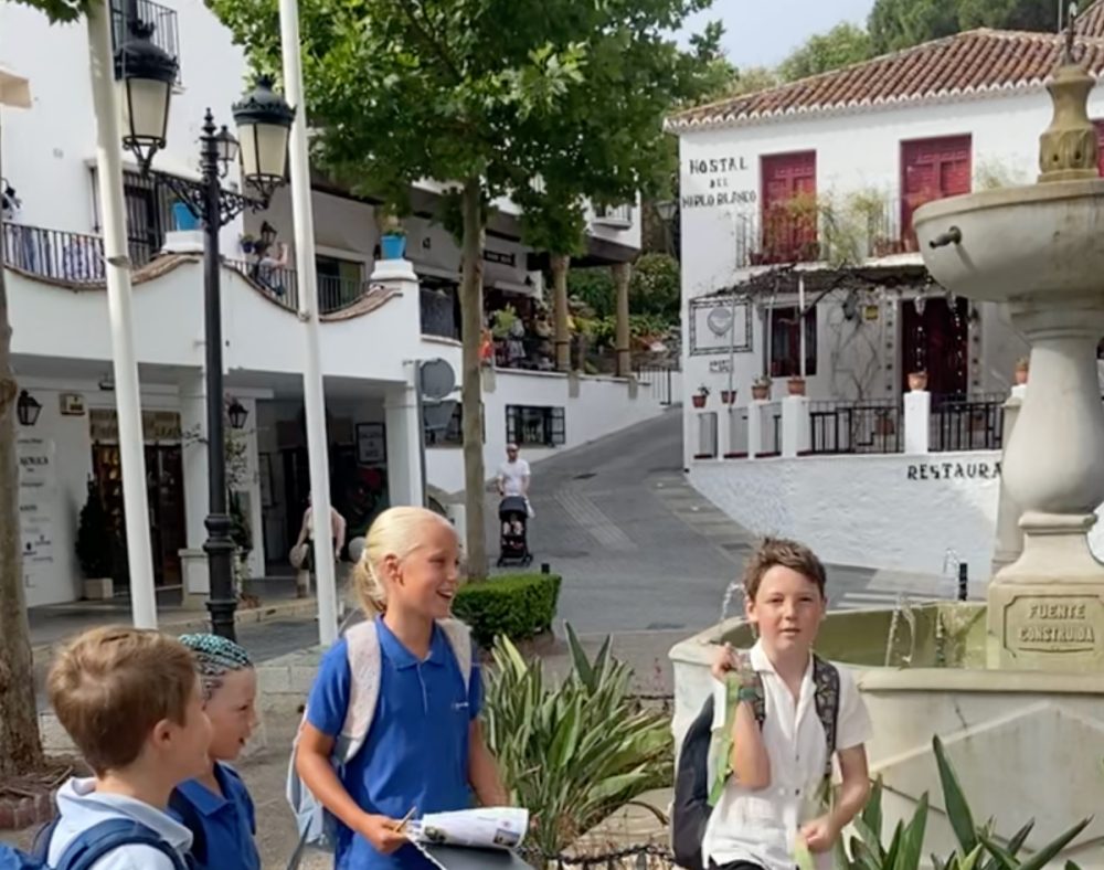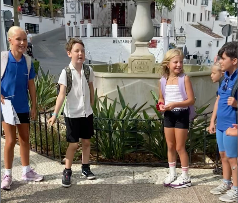 Småskolen 1. – 4. trinn har vært i Mijas Pueblo og lært om Spania via kunnskapsrebus og orientering. Alle elevene får lære å danse Flamenco.